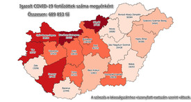 Az oldal térképe szerint eddig Budapesten (128 500) és Pest megyében (96 725) regisztrálták a legtöbb fertőzöttet. Ezt követi Győr-Moson-Sopron (38 936), Borsod-Abaúj-Zemplén (38 384) és Hajdú-Bihar megye (36 586). A fertőzésben legkevésbé érintett megye Zala megye (15 096).
