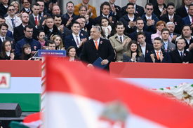 – fogalmazott a miniszterelnök, aki a Parlament előtt felállított színpadon mondta el ünnepi beszédét a Békemenet résztvevői előtt.
