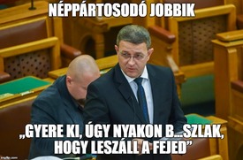Mint arról az MTI a hirado.hu alapján korábban beszámolt, Dömötör Csaba a kormány nevében reagált a Jobbik napirend előtti felszólalására a bevándorlás és az alkotmánymódosítás ügyében. Ezt követően Szilágyi György az kiáltotta: „Gyere ki, úgy nyakon b…szlak, hogy leszáll a fejed”.