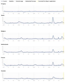 A WHO és az Európai Unió támogatásával létrehozott EuroMOMO adatai alapján, Magyarországon a koronavírus miatti halálozások számának a járvány második hullámában tapasztalt növekedése ellenére a pandémia teljes időszakát nézve nem beszélhetünk érdemi kiugrásról a halálozások számában. Ezzel szemben Spanyolországban, az Egyesült Királyság angliai országrészében és Belgiumban már mérsékelt, míg Svájcban, Hollandiában, Franciaországban, Szlovéniában, Portugáliában, Svédországban, de még Ausztriában is enyhe halálozási többlet látszik – írja a Magyar Nemzet.A lap emlékeztet: az Egészségügyi Világszervezet és az Európai Unió támogatásával létrehozott EuroMOMO (European Mortality Monitoring) hálózat 2008 óta értékeli a jelentő országok heti halálozási adatait. Honlapjukról nyomon követhető a COVID-19 pandémia alatti többlethalálozások alakulása is. A program eredetileg azzal a céllal alakult, hogy felmérje a szezonális influenzával, pandémiákkal és más környezeti tényezőkkel – így például nyári hőhullámokkal összefüggő heti többlethalálozást.