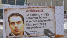 A Fidelitas Kerítésbontók című vándorkiállításának nyíregyházi állomásán pénteken jobbikosok jelentek meg, és lefestették azt a plakátot, amely arra hívja fel a figyelmet, hogy Vona Gábor arról beszélt: „a kerítés, az egy hatalmas bukás. A kerítés alkalmatlan Magyarország megvédésére”.