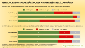 A kutatás eredménye azt mutatja, hogy még ennél is nagyobb arányban, a magyar lakosság kétharmada (67 százalék) nem tartja aktuálisnak Ukrajna Európai Unióhoz történő csatlakozását, ami helyett egyelőre partnerségi megállapodás megkötésével értenének egyet. A kutatásban minden vizsgált társadalmi csoport (pl. nemek, életkori és iskolázottsági csoportok), de még a kormánypártiak (66 százalék) és a baloldali ellenzékiek (64 százalék) körében is a kétharmados többség osztozik ezen a véleményen.
