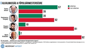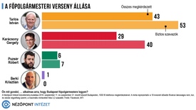 Hozzáfűzték, az alkalmassági küzdelemben a jelenlegi főpolgármester előnye „befagyott”, a két héttel korábbi kutatás adataihoz képest hibahatáron belüli eltérések mutathatók csak ki.
