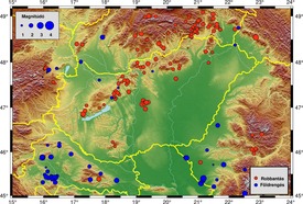 Az ábra az események epicentrumát és magnitúdóját szemlélteti: