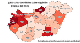 Az oldal térképe szerint eddig Budapesten (68 548) és Pest megyében (45 908) regisztrálták a legtöbb fertőzöttet. Ezt követi Hajdú-Bihar (20 872), Borsod-Abaúj-Zemplén megye (20 627) és Győr-Moson-Sopron (20 595). A fertőzésben legkevésbé érintett megye Tolna (8048).