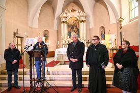 Soltész Miklós államtitkára beszédet mond a sóskúti Plébániatemplomban 2022. február 28-án