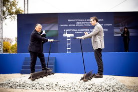 Orbán Viktor és Aleksandar Vucic a találkozó végén szimbolikusan összekapcsolta az első sínpárt, amely voltaképpen egy 150 éves vasútvonal felújításának első momentuma volt.