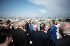 Orbán Viktor kormányfõ (j2) fogadja az Európa Tanács Parlamenti Közgyûlésének Európai Konzervatívok és Demokratikus Szövetség (EC/DA) képviselõcsoportjának tagjait Karmelita kolostor teraszán 2023. június 2-án.