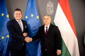 Orbán Viktor kormányfő fogadja Maros Sefcovicot, az Európai Bizottság alelnökét a Karmelita kolostorban 2021. november 29-én