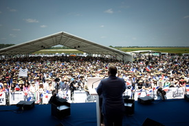 „Ti vagytok a gloire nemzete” – fogalmazott, majd utalva Marine Le Penre, azt mondta, nagyszerű vezetőtök van, csak akarnotok kell és sikerülni fog.