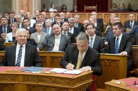 Újra miniszterelnökké választotta Orbán Viktort csütörtökön az Országgyűlés.Újra miniszterelnökké választotta Orbán Viktort csütörtökön az Országgyűlés.