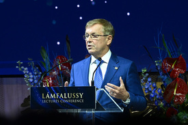 Matolcsy György leköszönő jegybankelnök a beszéde elején kiemelte: a Lámfalussy-program az euró atyjaként számontartott, magyar származású Lámfalussy Sándor előtt tiszteleg, a mai konferencia pedig igen különleges, mivel az MNB idén ünnepli századik születésnapját, ez pedig egybeesik a konferencia tízéves évfordulójával – tudósított a Világgazdaság.