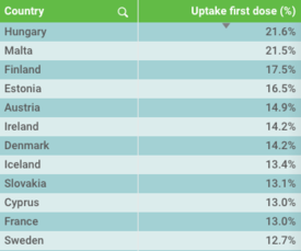 A vasárnapi állapotok szerint Magyarország került az uniós ranglista élére a felnőtt lakosság átoltottsága terén. Hosszú ideje álltunk Málta mögött a második helyen, azonban mostanra – hacsak hajszállal is, de – megelőztük a szigetországot – szúrta ki a portfolio.hu újságírója.