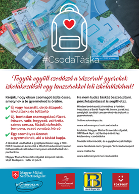 Győri-Dani Lajos elmondta, a Csodatáska nevű akcióban az ország 85 pontján gyűjtik az iskolaszereket, amiket később eljuttatnak rászoruló családoknak.