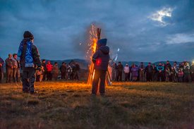 A szeles hideg ellenére mintegy kétszázan másztak ki a hegytetőre, mintegy ötvenen lóháton vették körül a tüzet. Az ünnepi beszédek elhangzása után a résztvevők közös énekléssel tették közösségi élménnyé a lármafagyújtást.