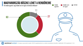 A Nézőpont Intézet az október 23-ai rendőrattak 12. évfordulójára készített közvélemény-kutatást.A felnőtt magyar népesség 63 százaléka ért egyet azzal, hogy Magyarország büszke lehet a rendőreire; ennek ellenkezőjét a megkérdezettek 27 százaléka mondja – derül ki a Nézőpont Intézet közvélemény-kutatásából, amelyet az Astoriánál történt október 23-i rendőri roham 12. évfordulója alkalmából készítettek.