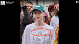 Ennél még kellemetlenebb lehet Lilinek, amikor utólag kiszúrja azt, amit Deák Dániel politológus már kiszúrt és gyorsan meg is osztott a Facebookon: az ifjú forradalmár pólójára ugyanis még egy kifejezetten egyszerű szót sem sikerült helyesen ráírni. Azon így „elvileg független Katalin” (utalva ezzel a köztársasági elnökre) felirat helyett „elvieg független Katalin” szerepelt.