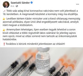 Csütörtökön Szaniszló Sándor, Pestszentlőrinc DK-s polgármestere közösségi oldalán közölte, hogy mivel több száz adag kínai vakcinára nem volt jelentkező a kerületben, így a kormány a felhasználatlan adagokat elszállítja. A bejelentés hírére valóságos tömegfelháborodás alakult ki a poszt alatt, több száz kommentelő azt kifogásolta, hogy a baloldali városvezetés nem is ajánlotta fel nekik a kínai oltást, amit egyébként minden probléma nélkül elfogadtak volna. Gyurcsány Ferenc pártja a kezdetek óta bizonytalanságot próbál kelteni a Sinopharmmal körül, Szaniszló Sándor mai akciója is ebbe a körbe illeszthető.FRISS: