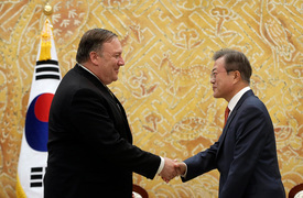 Mike Pompeo és Mun Dzse In. Fotó: MTI/EPA/Ahn Jung Dzsun