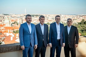 A V4-kormányfők – Andrej Babis cseh, Mateusz Morawiecki lengyel, Peter Pellegrini szlovák és Orbán Viktor magyar miniszterelnök – munkaértekezletét a prágai Hrzán palotában tartják péntek este.