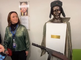 Pufajkát és géppisztolyt kapott a brüsszeli Horn-szobor