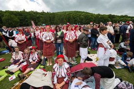 Sok neves Mária-kegyhely búcsúja is pünkösdkor van. Mátraverebélyre, Ferencszállásra, Pálosszentkútra, Radnára és nem utolsósorban Csíksomlyóra nagy tömegeket vonz az ünnep. Az idén a járvány miatt mehetnek ugyan zarándokok, de kisebb számban. Nemcsak az anyaországbeliek, de a moldvai csángók is megjelennek ezen a napon a Kissomlyó hegyénél álló híres kegytemplomnál. Mi tartja ma is ébren bennük, hogy pünkösdkor Csíksomlyóra kell menni a „Babba Máriához”, aki ott várja őket a hajnali fölkelő nap fényében? A csángók magyar örökségének egyik legszebb megnyilvánulásában minden falu saját zászló alatt teszi meg a hosszú utat. A Szűz Mária archaikus megnevezése – a Babba Mária – sok közül az egyik bizonyíték arra, hogy eleink mindig is Mária népének vallották magukat. Ezért nem okozott semmi törést a római kereszténység fölvétele keletről jött őseinknek.