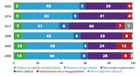 A tendencia nem új keletű. Már a 2000 és 2008 között lefolytatott vizsgálatok is azt mutatták, hogy kevés a vallását gyakorló fiatal, ugyanakkor számuk az életkor előrehaladtával növekszik. A 2012-es Magyar ifjúságkutatás a templomba járás gyakoriságára is rákérdezett, ebből kiderült, hogy a fiatalok csaknem fele soha nem megy templomba, 16 százalékuk ritkán, és csupán alig öt százalékuk heti rendszerességgel. Legutóbb, a pandémia időszakában, 2020 végén az Erzsébet Ifjúsági Alap Nonprofit Kft. megrendelésére a Társadalomkutató Kft. kérdezett meg nyolcezer anyaországi, illetve négyezer határon túli magyar fiatalt. A Magyar fiatalok 2020 című kutatás megállapította, hogy 2020-ban tovább csökkent az egyes egyházakhoz kötődő hívő fiatalok aránya, ugyanakkor a „maga módján” vallásosak száma tovább növekedett. Ezzel párhuzamosan a nem vallásosak aránya mintegy hat százalékkal csökkent, amiből úgy tűnik, mintha a 2000 óta tartó folyamat megtorpant volna; és mára kevesebb fiatal vallja magát nem vallásosnak, mint az előző felmérések során. A vallásos fiatalok túlnyomó többsége a történelmi egyházak híve, ezeken belül is római katolikus. Templomba ugyanakkor továbbra is alig járnak, a 15–29 éves korosztály csupán nyolc százaléka látogatja legalább heti gyakorisággal Isten házát, további öt százalékuk alkalmanként, több mint ötven százalék soha. Miközben tehát az egyháziasan is vallásos fiatalok száma csökken, az elmúlt években erőteljesen növekszik a „maga módján vallásosak” száma. Feltehetően a járvány kiváltott egyfajta érdeklődést a spiritualitás, a természetfeletti erők iránt, a bizonytalan helyzetben a fiatalok kapaszkodót, válaszokat keresnek.