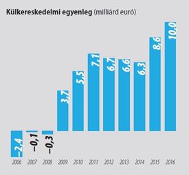 A változások eredményeként Magyarország az EU egyik legsikeresebb exportőrévé vált. 2015-ben az ország kivitele 7 százalékkal múlta felül a behozatalt, ami 2016-ra 12 százalékra nőtt. Utóbbinál jobb adatot a tavaly­előtti évben csak Írország (66%) és Németország (27%) és Csehország (13%) tudott produkálni – s szintén 12 százalékot Olaszország, Dánia és Hollandia. Térségünkben ugyanakkor jellemzőbb, hogy a kivitel nem éri el a behozatal szintjét: Románia vagy Bulgária importjának tizede, Horvátországénak egyharmada fedezetlen.