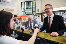 A sajtótájékoztató végén Rétvári Bence bemutatta a digitális egészségügyi alkalmazás működését; egy belvárosi patikában a mobilapplikáció segítségével váltotta ki a számára felírt készítményt.