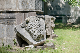 – A középkori oklevelekben Szent Kereszt, Udvarhely vagy Keresztur néven említett birtokot Anonymus leírásai szerint Árpád vezér Elődnek, majd I. István király a Csákoknak adományozta. Az ő utódaik az Árpád-ház kihalásáig birtokolták a területet – meséli idegenvezetőnk, Ferpász Boglárka, hozzátéve, hogy a kolostor a XII.-től egészen a XVI. századig folyamatosan bővült. – A bencés apátságról az első írásos feljegyzés 1146-ból származik, feltehetően ekkor készült el az árokkal körülvett terület északi részén a templom és a délről hozzá csatlakozó kolostor. A templomot temető veszi körül, a feltárt sírok többsége nyugat–keleti tájolású, koporsós vagy a nélküli temetkezésekre utal. A leletanyagból kiderül, hogy a temetőt hosszú évtizedekig használták, többek között az apátság kegyurai, a Csákok is. Az egyik sírt a belőle előkerült S végű hajkarika alapján sikerült a XII. század első felére datálni. A templom szentélyét később két oldalról kápolnával bővítették, melyek közül az északi később osszárium, azaz csontkamra lett. A következő építési periódusban, 1190 és 1220 között ettől a korai templomtól délre épült fel a szent kereszt tiszteletére szentelt hatalmas román kori bazilika, amelynek csaknem negyven méter hosszú belső terét három pillérpár osztotja három hajóra. A régészeti feltárások arról árulkodnak, hogy nem sokkal ezután készült el a pompás faragványokkal díszített kolostor is, ahol konyhát, két refektóriumot és egy könyvkötő műhelyt rendeztek be az itt élő leg­alább tucatnyi szerzetes számára.