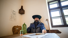 Az épületbe lépve most nem a híres csárda éttermébe, hanem a közös folyosóról nyíló megújult interaktív kiállítás felé vesszük az irányt, ahol maga Rózsa Sándor köszönt bennünket, szögedies tájszólással említve, hogy „szömét rajtunk tartja”.