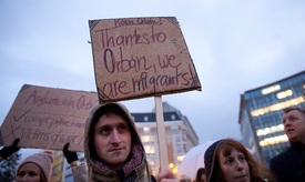 Mester Barnabás, a RED mozgalom egyik alapítója beszédében a külföldi tüntetések nagyszámú magyar résztvevőjére hívta fel a figyelmet, akik véleménye szerint a magyar kormány politikája miatt mentek el Magyarországról.