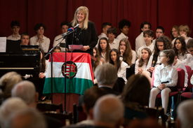 Schmidt Mária felidézte, a 68 évvel ezelőtti október 23-án a magyar nép felkelt az idegen uralom és az általa rákényszerített emberellenes rendszer ellen. Akkor mindenki egyet akart: lerázni a szovjet igát, visszakapni végre a nemzet függetlenségét. „Nem számított, hogy egy szuperhatalommal kellett megharcolnunk, mert hazánk megmaradása forgott kockán” – emelte ki.