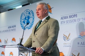 Amy Fraenkel, a vándorló vadon élő álltfajok védelméről szóló egyezmény (CMS) főtitkára az 1995 óta létező, 121 országot tömörítő AEWA fontos szerepéről szólt.
