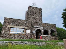A kilátó tövében nagy idők tanúja, több mint százharminc éves katonai szintezőoszlop rejtőzik. Odébb tekintélyt parancsoló kereszt, alatta Szent István király szobra figyelmeztet keresztény magyar hazánk építésének és védelmezésének örök, szent kötelességére.
