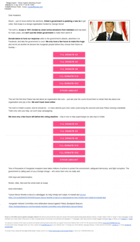 Holott, folytatódik a levél, amelyet csatolunk a cikk végén, az Avaazt 100 százalékban kis, online adományokból tartják el tagjai, és ez így van évek óta. Ezért, írják, a szervezet beperli az Orbán-kormányt, hogy rákényszerítse őket ennek beismerésére.