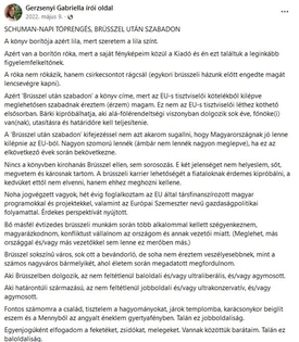 Kollárhoz hasonlóan sok évig Brüsszelnek dolgozott a magyar rezsicsökkentés ellen kirohanást intéző Gerzsenyi Gabriella. Róla az tudható, hogy szivárványos felsőben fotózkodott, migrációpárti és hisz a multikultiban.