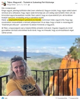 Ugyanakkor Magyar Péter számos jelöltjénél – hiába nincsen feltétlenül közvetlen kapcsolatuk a milliárdos hálózatához – szembetűnő, hogy Soros György nézetrendszerének megfelelő elveket vallanak. Ilyen Kollár Kinga is, aki a magyarokat „agymosott” jelzővel illette, magát globalistának és liberálisnak vallja, pont, mint a milliárdos spekuláns. A 2021 óta Luxemburgban, az Európai Bizottság Gazdasági és Pénzügyi Ügyekért felelős Főigazgatóságán dolgozó Kollárról sokat elmond a Mandiner által lementett nyilvános posztja: