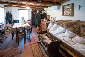 Az utcára néző tisztaszoba önkéntesek által összegyűjtött helyi és környékbeli bútorai, berendezési tárgyai és viseletei kézzelfogható közelségbe hozzák elődeink mindennapjait. A fiókos szekrényen a mélyen vallásos falubeliek életének fontos pillanatait megörökítő fekete-fehér fotográfiák sorakoznak.