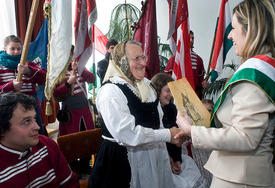 Szabó Erzsébet átveszi a honosítási okiratot Kiss Melinda jászszentlászlói polgármestertől az állampolgársági eskütételt követően.