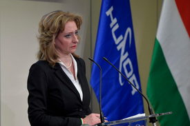 Ferencz Orsolya miniszteri biztosa a HUNOR (Hungarian to Orbit) – Magyar Űrhajós Programról tartott sajtótájékoztatón 2022. február 14-én