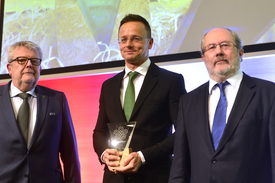 Szijjártó Péter külgazdasági és külügyminiszter, Orosz Ildikó, a II. Rákóczi Ferenc Kárpátaljai Magyar Főiskola elnöke, ifj. Lomnici Zoltán, a CÖF-CÖKA szóvivője és a Regőczi Alapítvány vehette át a Civil Összefogás Fórum – Civil Összefogás Közhasznú Alapítvány (CÖF-CÖKA) Szellemi honvédő díját csütörtökön Budapesten.