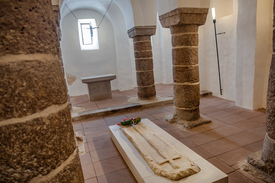 – Szerencsére a sír alatt három ládát is találtunk, amelyek közül az egyik láthatóan régebbi, nagyon rossz állapotban lévő csontokat rejtett. Ezek C14-es szénizotópos vizsgálata kimutatta, hogy minden bizonnyal I. András király korából származnak – vázolja Jeromos atya, majd kitér a régészeti kutatásra is, amely az altemplomban négy középkori sírt tárt fel, ahová a király családtagjait temethették.