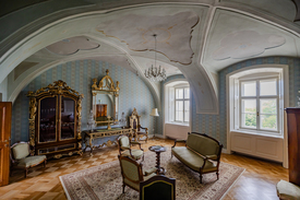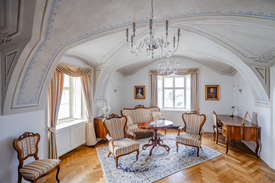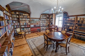 – Miután a király Budaörsön letette a fegyvert a kormányzópárti erők előtt, elfogták és Halbik Ciprián apát tiltakozása ellenére feleségével együtt 1921. október 26-án különvonattal Tihanyba szállították. Az apát ugyan a saját szobáját ajánlotta fel a királyi párnak, ám a rendőrség a szalont jobban védhetőnek találta, így azt alakították át királyi szálláshellyé. Itt próbálták meg Károlyt rávenni, hogy önszántából mondjon le a trónról, de mivel Isten akaratából Szent István koronájával koronázták királlyá, hite miatt a kérésnek nem tett eleget. Erre válaszul az országgyűlés kimondta a Habsburg-ház trónfosztását, a királyt pedig Madeirára száműzték, ahol alig egy évvel később meg is halt – magyarázza a perjel, majd elmondja azt is, hogy a király száműzetése után nem sokkal már emlékszobát rendeztek itt be, és a róla készült képeslapok alapján rendezték be most az enteriőrt, a díszítő falfestést pedig a falkutatásnak köszönhetően sikerült helyreállítani.