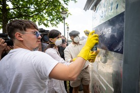 Budapest utcáiról Karácsony Gergely főpolgármester nemtörődömsége köszön vissza, a fővárost koszos, piszkos, szemetes utcák jellemzik – jelentette ki a Fidesz-KDNP főpolgármester-jelöltje szerdán, Budapesten. Szentkirályi Alexandra segítőivel a főváros fenntartásában lévő, graffitivel összefirkált, használaton kívüli megállót takarított meg a Haller utcánál, a Duna-parton.Lehet, hogy Karácsony Gergely szerint az összefirkált megálló street art vagy művészeti alkotás, ha már a gazt méhlegelőnek nevezi – mondta Szentkirályi Alexandra. Mint mondta, ő ezt a hanyag városvezetés példájának tartja ugyanúgy, mint a Gellért-hegyen a szeméttől túlcsorduló kukákat.