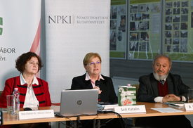 Budapest, 2022. október 25. Szili Katalin határon túli autonómiaügyekért felelõs miniszterelnöki megbízott (k), Bácsfainé Hévízi Józsa történész, az Erdélyi Szövetség elnöke, A svájci Jura kanton autonómiája, harca önrendelkezéséért címû könyv fõszerkesztõje és lektora és B. Szabó Péter társszerkesztõ a kötet budapesti bemutatóján