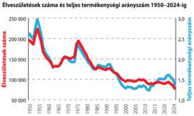 – 2021 óta enyhe csökkenés tapasztalható: 2022-ben 1,55, 2023-ban 1,51, tavaly 1,38 volt a teljes termékenységi ráta, de még ez is bőven a 2011-es mélypont fölött van. A 2021-et követő csökkenés tekintetében az EU-tagállamok sorában a hatodik helyen álltunk, 21 országénál jobb értékkel. A születésszám csökkenése tehát Magyarországon mérsékeltebb volt, mint az EU-tagállamok döntő többségében.