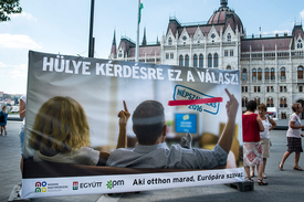 Ha valaki azt gondolná, nincs lejjebb annál, mintha például Gyurcsány Ferenc oktat ki keresztényi gondolkodásból, nagyot téved. Az abszolút mélypontnak ugyanis talán az Együtt, a PM és a Bokros Lajos-féle MOMA plakátkampányát tekinthetjük. A három kispárt egy olyan képpel buzdít bojkottra, amelyen egy tévé előtt ülő nő és férfi látható, amint középső ujjukkal „bemutatnak”, ezzel tulajdonképpen üzenve azoknak is, akik részt kívánnak venni a referendumon.