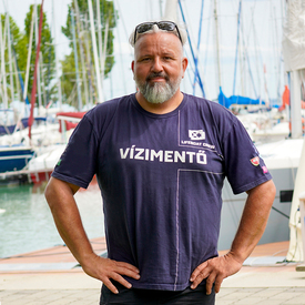 – A VMSZ nemcsak vízimentőkkel, orvosokkal, mentőtisztekkel, ápolókkal, hanem kisgéphajó-vezetőkkel és matrózokkal is jelen van. A sárkányhajózás nagyon népszerű program, a Zánkai Erzsébet-táborban egyébként négy, a Fonyódligeti Erzsébet-táborban két sárkányhajó áll a táborozók rendelkezésére. Ezeket a vízimentők kormányozzák, és mentőmotoros vagy kísérő kisgéphajókkal is biztosítjuk a programot. A sárkányhajó a kísérő motoroshajó nélkül nem hagyhatja el a kikötőt. A fonyódligeti Erzsébet-táborban található vízi élménypark ugyancsak nagyon szuper dolog, imádják a gyerekek. Ennek is mi végezzük a felügyeletét. A vízimentők bázisa a vízi élményparkban a Life Guard torony, innen egy fő figyel a gyerekekre, miközben egy másik vízimentő a vízben vagy a kalandpark Life Guard toronnyal ellentétes részén tartózkodik.