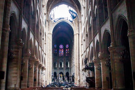 A Notre-Dame gótikus székesegyházban, a francia főváros egyik jelképében hétfőn kora este keletkezett tűz. A lángok a világhírű épület felső részében pusztítottak, összeomlott a felújítás alatt álló katedrális kúp alakú tornya, a huszártorony, és odaveszett a teljes tetőszerkezet. A párizsi ügyészség baleset miatt indított nyomozást a tűz ügyében, a tűzoltóság kedd reggel bejelentette, hogy teljesen megfékezték a lángokat.